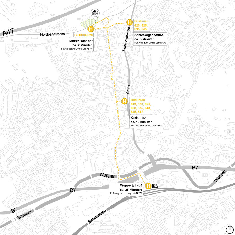 Aus dem Regional- und Fernverkehr erreichen Sie das Living Lab NRW über den Wuppertaler HBF.