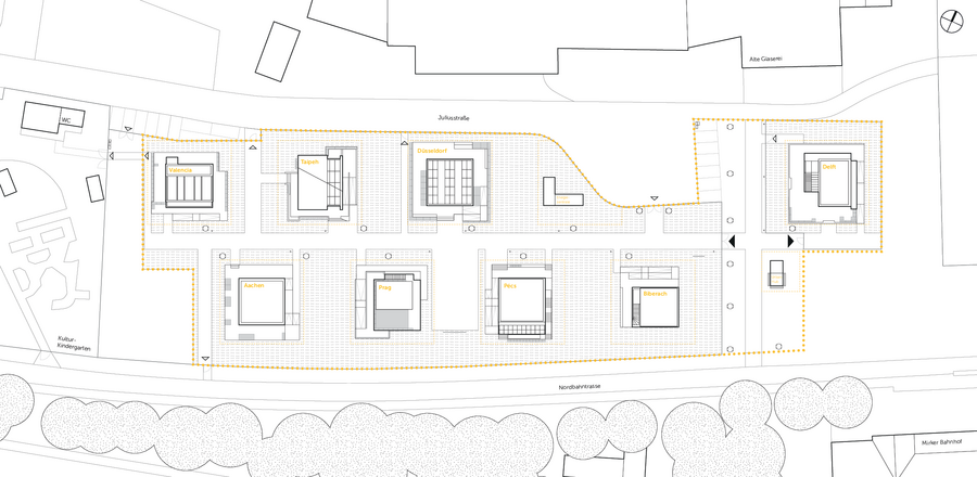 Die zentrale innerstädtische Lage im nördlichen Teil des Mirker Quartiers bietet den perfekten Standort für die acht Demonstratoren, die im Rahmen des Solar Decathlon Europe 21/22 erbaut und jetzt für Forschung, Lehre und Vermittlung genutzt werden.
